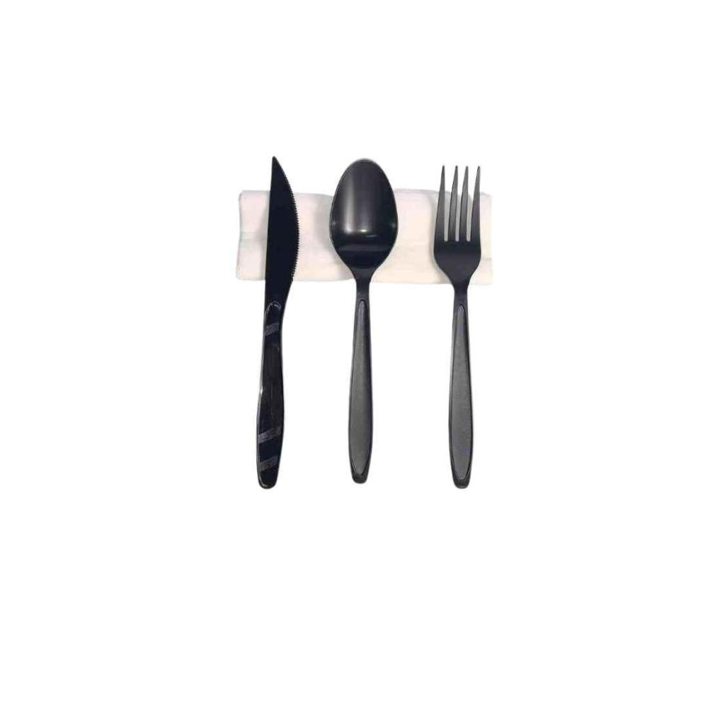 High quality 4-piece dinner set, fork - spoon - napkin - knife - transparent cover.